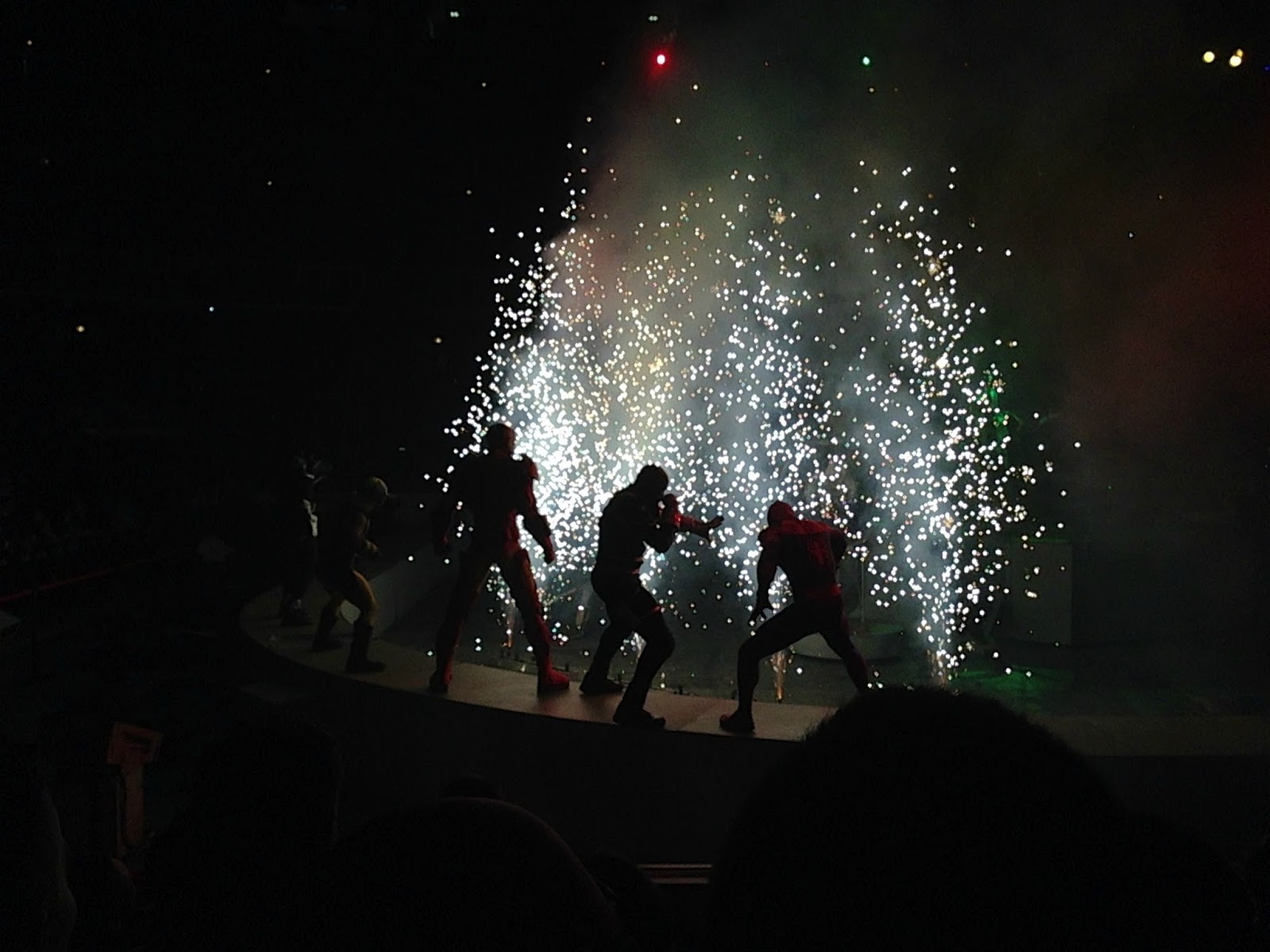 After defeating the "merchandiser" (pretty cool name for a villain, huh?) we took our seats and got prepared for the show to begin. The show was a lot of fun. There were epic explosions, fantastic fights and exposition, a lot of exposition. I think these parts might lose the attention of the younger ones in the audience, but the visuals that occur during might keep them focused until the next action scene begins.